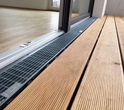 DACHFIX STEEL 115 Typ 100 - Rinnenunterteil, aus korrosionsgeschütztem verzinkten Stahl, begehbar und rollstuhlbefahrbar, Rostauflage nach innen gekantet, im Seiten- und Sohlbereich perforiert, mit Anschlussmöglichkeit im Sohlbereich für Anschlussstutzen DN/OD 75 oder DN/OD 100 sowie 8-fache Anschlussmöglichkeit im Seitenbereich für Stichkanal, inkl. möglicher 4-facher Fixierungsankerfunktion, LxBxH 1000x115x100 mm, Art.-Nr. 66164