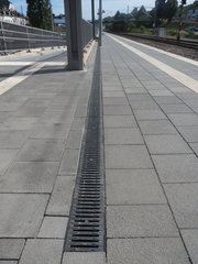 für NW 100, mit Schmutzfangeimer aus Kunststoff, mit FIBRETEC Design Stegrost, SW 110/9 mm, in der Farbe Schwarz, Kl. C 250, arretiert, 0,5 m