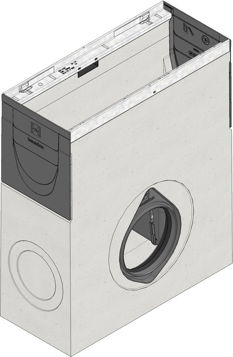 für NW 150, für Typ 110 / 150 / 200 und Typ 01 - 010, mit verzinkten Stahlzargen und Schmutzfangeimer aus Kunststoff, seitlich mit integriertem KG-Rohranschluss DN/OD 160, 0,5 m