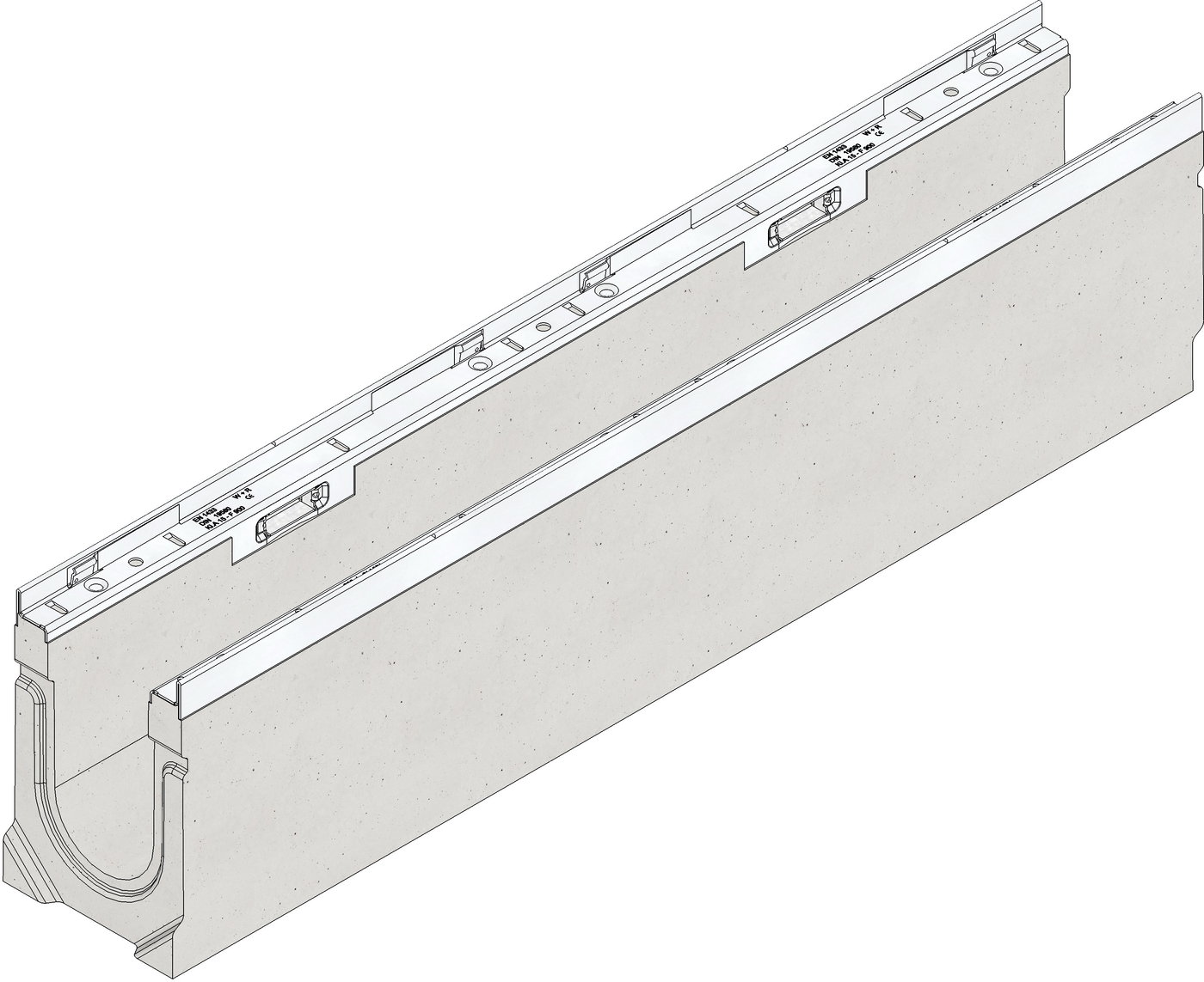 FASERFIX KS 100 Typ 015 - Rinnenunterteil aus faserbewehrtem Beton, Belastungsklasse A 15 - F 900 nach DIN 19580/EN 1433, CE-konform , mit Edelstahlzarge CNS 1.4301 und schraublosem Schnellverschluss SIDE-LOCK für schnelle und einfache Montage der Abdeckung, zusätzlich Knebelverschraubung möglich, 8-fache Arretierung, mit Dichtungsfalz, LxBxH 1000x160x244 mm, Art.-Nr. 8243