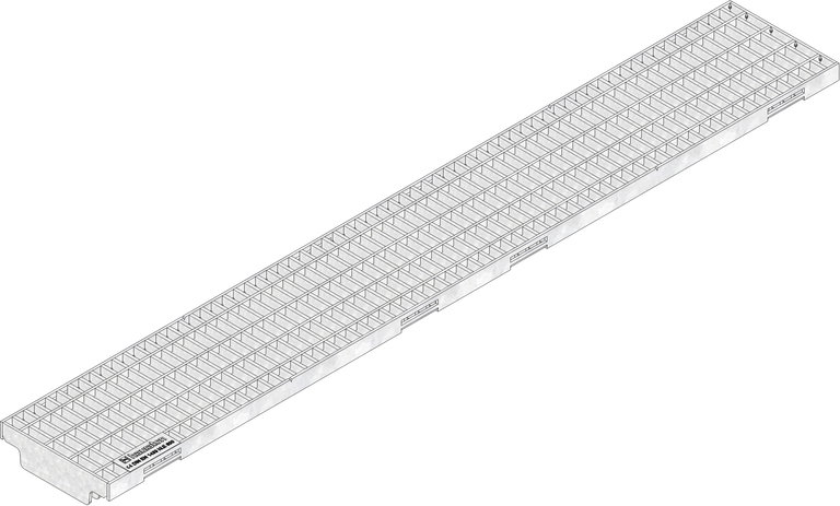 FASERFIX KS 100 - Gitterrost MW 11/30 mm, verzinkt, mit Längsschubsicherung, Belastungsklasse A 15 - E 600 nach DIN 19580/EN 1433, CE-konform, 8-fache Arretierung, Baulänge 1000 mm, Art.Nr. 28071