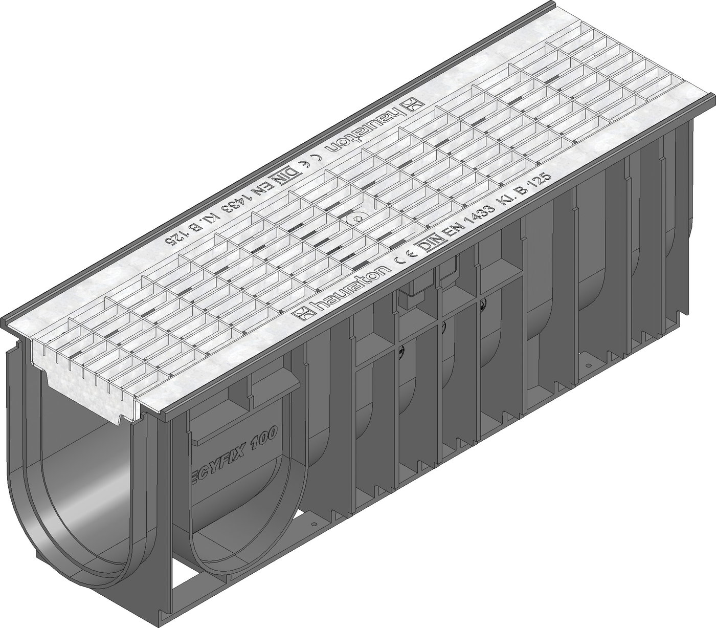 RECYFIX STANDARD 100 Rinne Typ 010 mit Gitterrost MW 30/10 mm, verzinkt, Kl. B 125, arretiert, 0,5 m