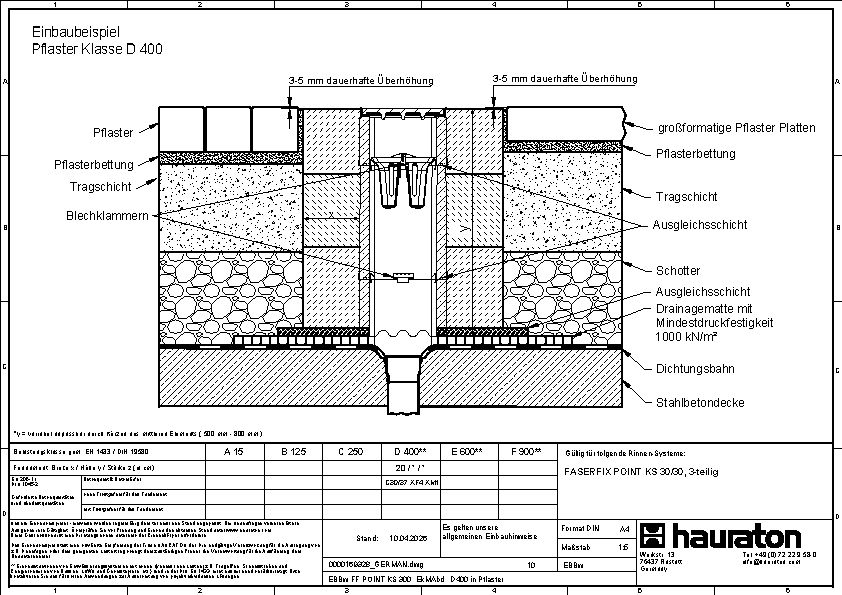 bandverzinkter Stahl, faserbewehrter Beton, Gusseisen GJS 500-7, recyceltes Polypropylen
