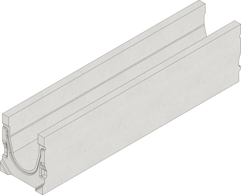 FASERFIX STANDARD 150 Typ 010 - Rinnenunterteil aus faserbewehrtem Beton, Belastungsklasse A 15 - C 250 nach DIN 19580/EN 1433, in Verbindung mit Schlitzaufsätzen bis Klasse E 600 nach EN 1433, L/B/H 1000x212x245 mm, Art.-Nr. 403