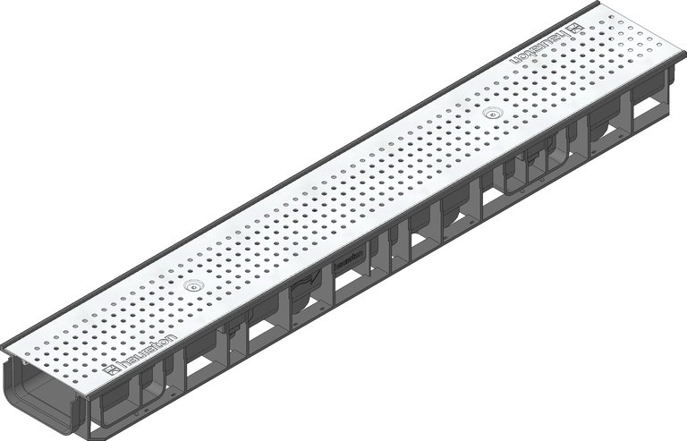 RECYFIX STANDARD 100 Rinne Typ 80 mit Lochrost Ø 6 mm, Edelstahl, Kl. A 15, arretiert, 1 m