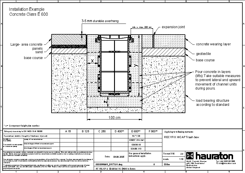 Concrete class D 400, RECYFIX HICAP F 1300, 2300, 3300, 5300 in connection with stainless steel frame in Wave or Slot design