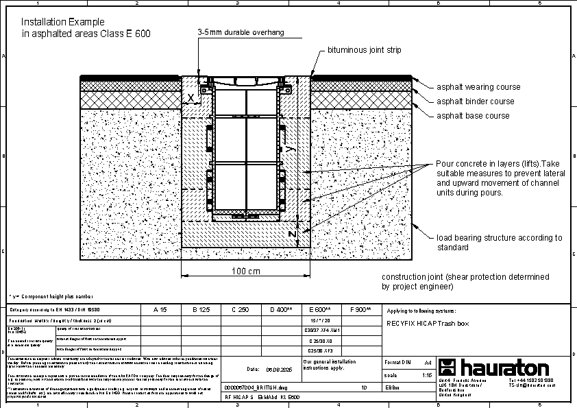 Pavement class D 400, RECYFIX HICAP F 1200, 2200, 3200, 5200 in connection with stainless steel frame in Wave or Slot design