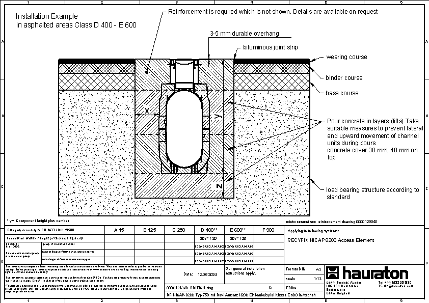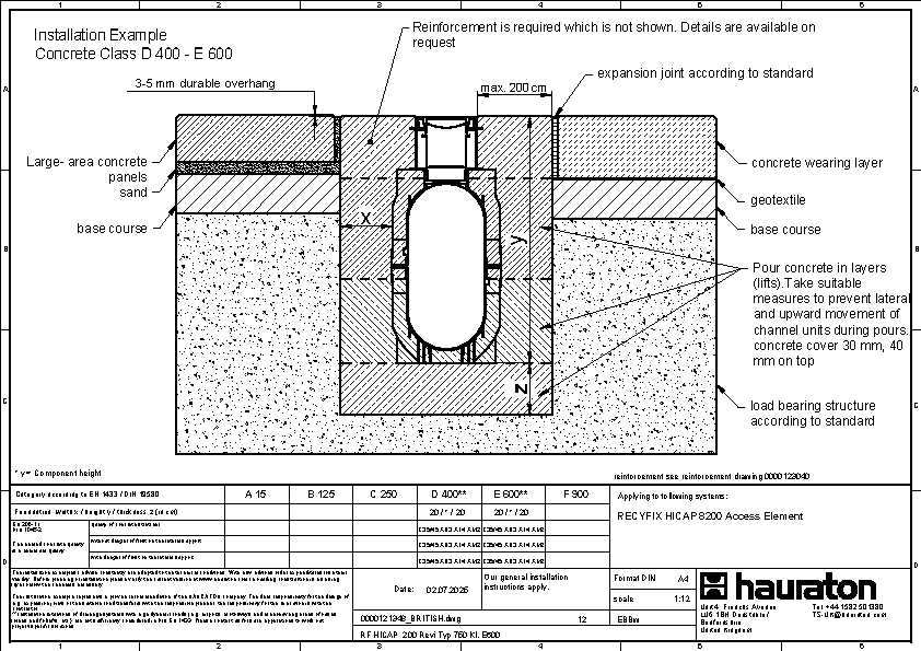 Concrete class A 15 - F 900, RECYFIX HICAP F 1200 - 8200 u. 1300 - 8300 with inlet box and L- or T-shaped channel connection