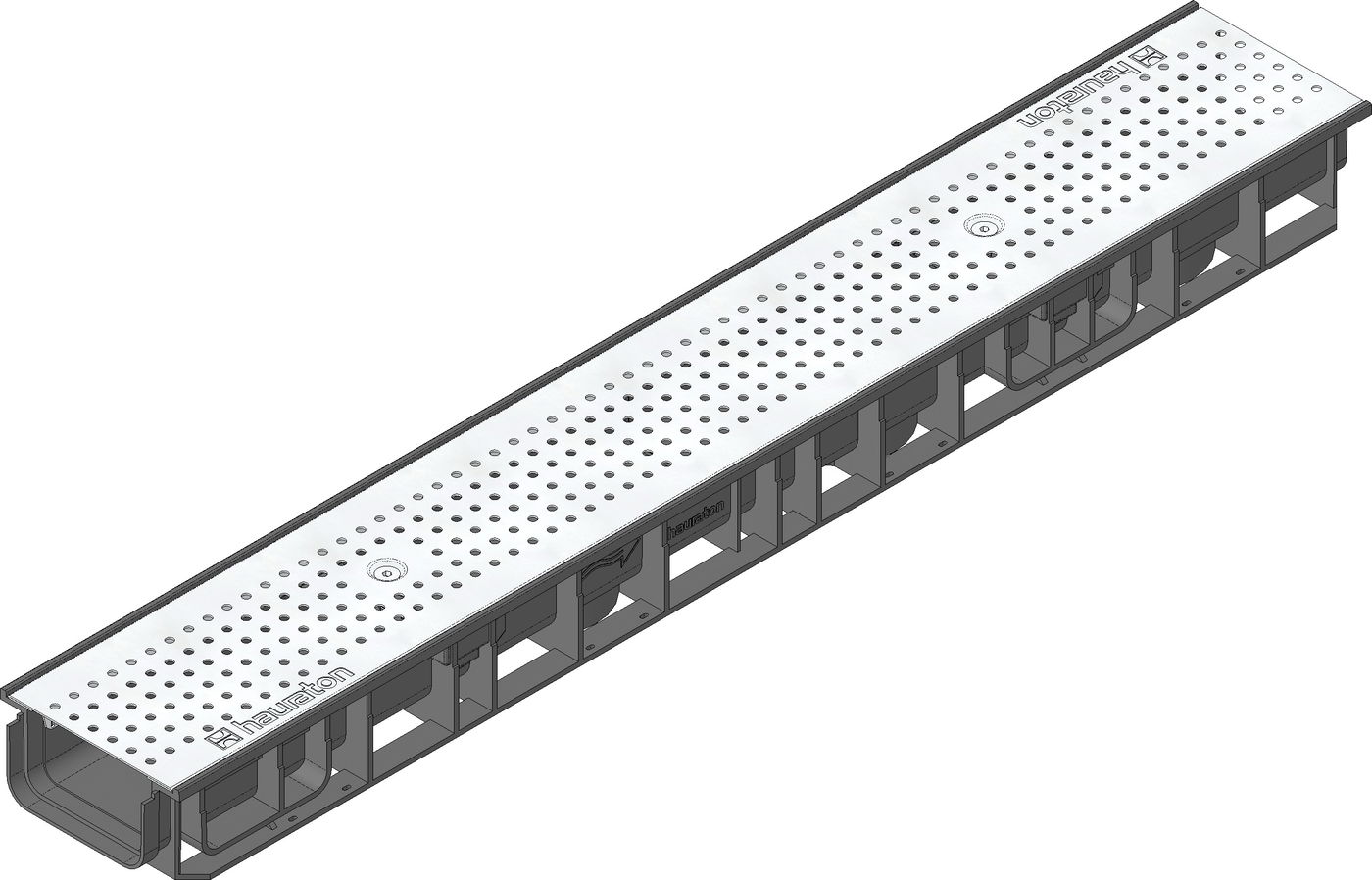 RECYFIX STANDARD 100 Channel type 80 with perforated grating Ø 6 mm, stainless steel, cl. A 15, locked, 1 m