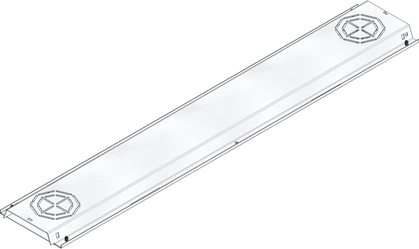 DACHFIX STEEL/STEELFIX REGULAR -cross-intersection with base plate, trapezoidal conical shape/hat profile, with flat trough as closed flat duct, made of stainless steel CNS 1.4301, pluggable and fixable, with connection possibility DN/OD 110 as inlet and outlet, LxWxH 1000x169x30 mm, item no. 65072