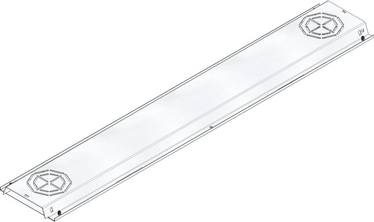 Cross-intersection (channel), stainless steel, trapezoidal conical shape/hat profile, with flat trough as closed flat duct, DACHFIX STEEL/STEELFIX REGULAR, 1 m