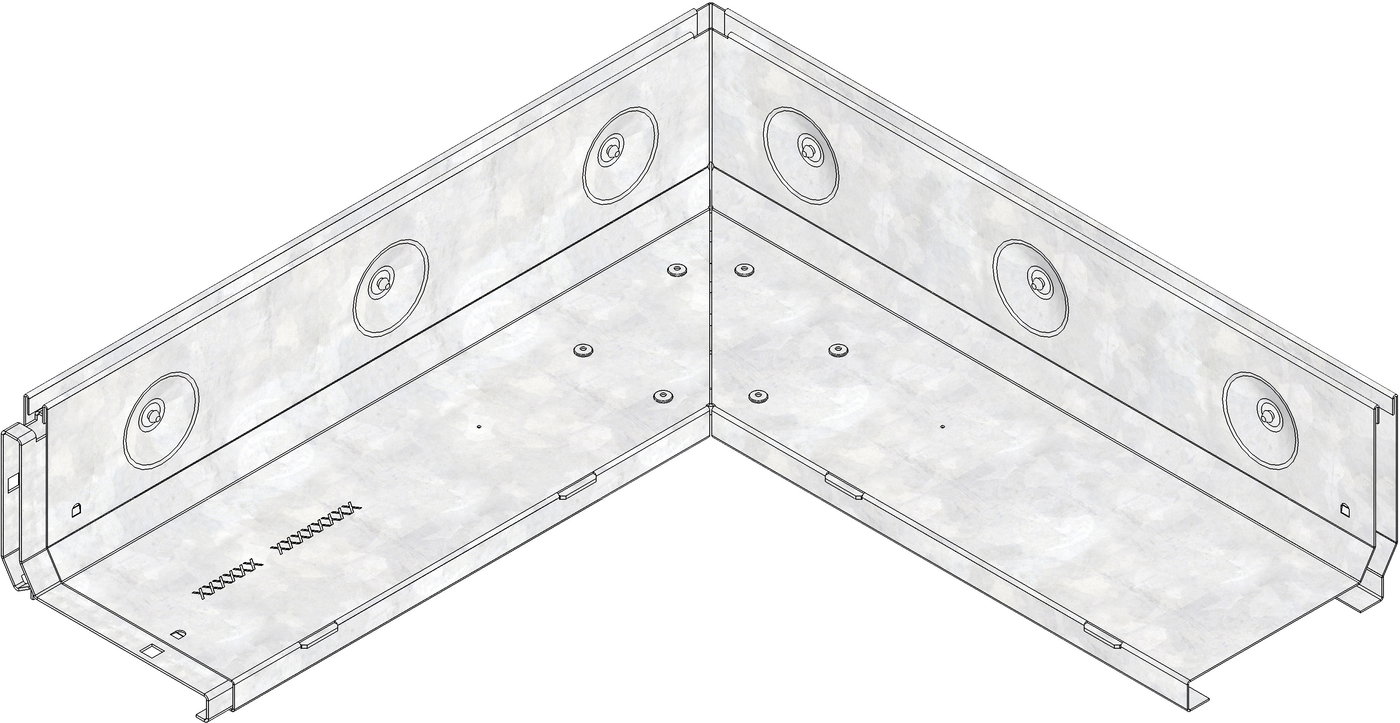 Slotted cover SW 10 mm, neck height 105 mm, galvanised, asymmetric, as corner element inside corner 90°, with integrated, full-surface connector, cl. A 15, FASERFIX KS/ FASERFIX STANDARD/ RECYFIX PRO 100, side length 0.5 m
