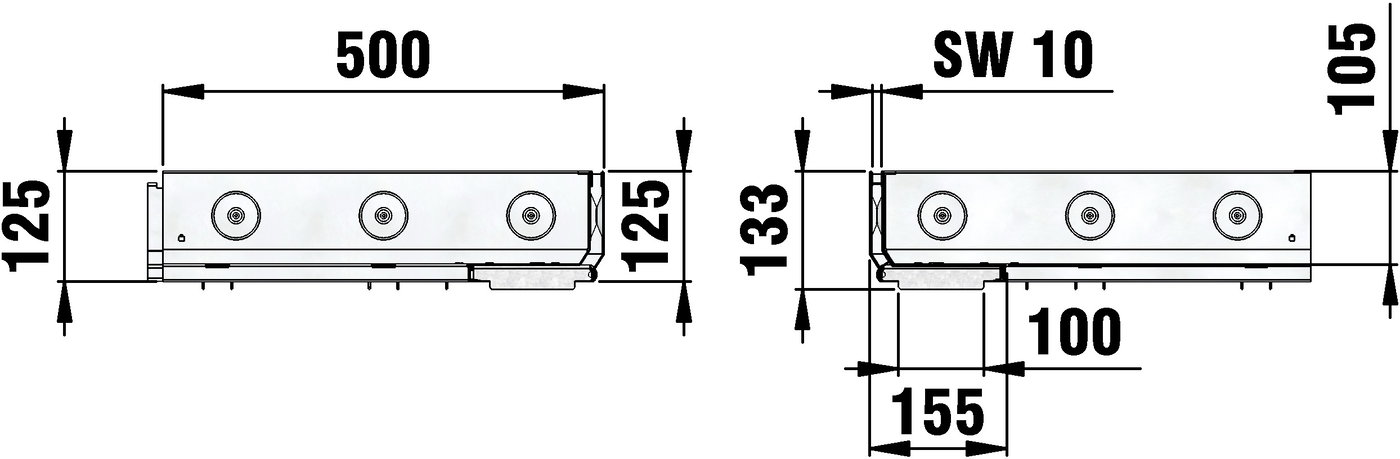 FASERFIX KS/ FASERFIX STANDARD/ RECYFIX PRO 100 - Slotted cover SW 10 mm, neck height 105 mm, asymmetric, stainless steel CNS 1.4301 , as corner element inside corner 90°, with integrated full-surface connector, load class A 15 according to EN 1433, side length 500 mm, item no. 33108