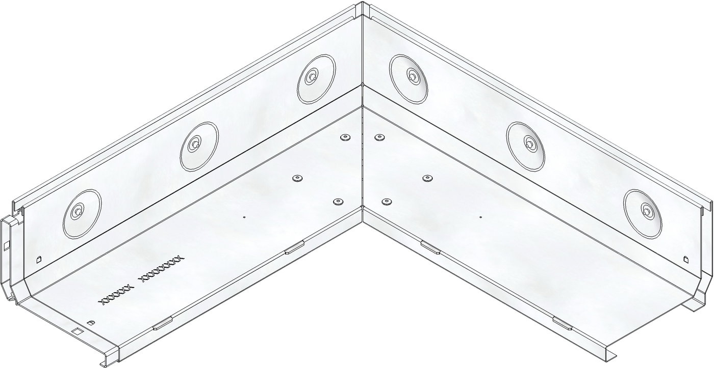 Slotted cover SW 10 mm, neck height 105 mm, stainless steel, asymmetric, as corner element inside corner 90°, with integrated, full-surface connector, cl. A 15, FASERFIX KS/ FASERFIX STANDARD/ RECYFIX PRO 100, side length 0.5 m
