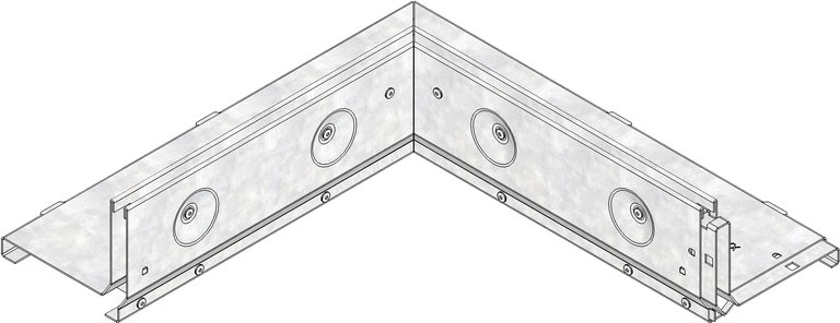 Slotted cover SW 12 mm, neck height 105 mm, galvanised, asymmetric, as corner element outside corner 90°, with integrated, full-surface connector, cl. C 250, FASERFIX KS/ FASERFIX STANDARD/ RECYFIX PRO 100, side length 0.5 m