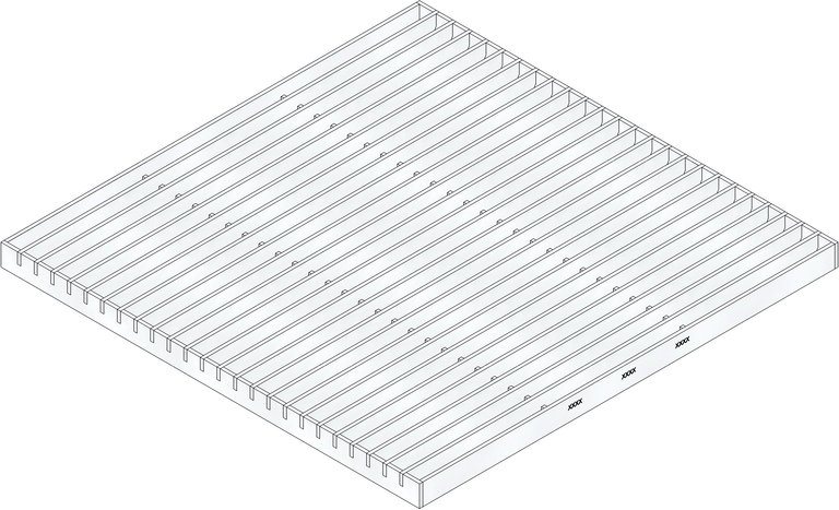 Longitudinal grating bar distance 12 mm, stainless steel, bar thickness 3 mm, cl. A 15, DACHFIX POINT Gully 40/40