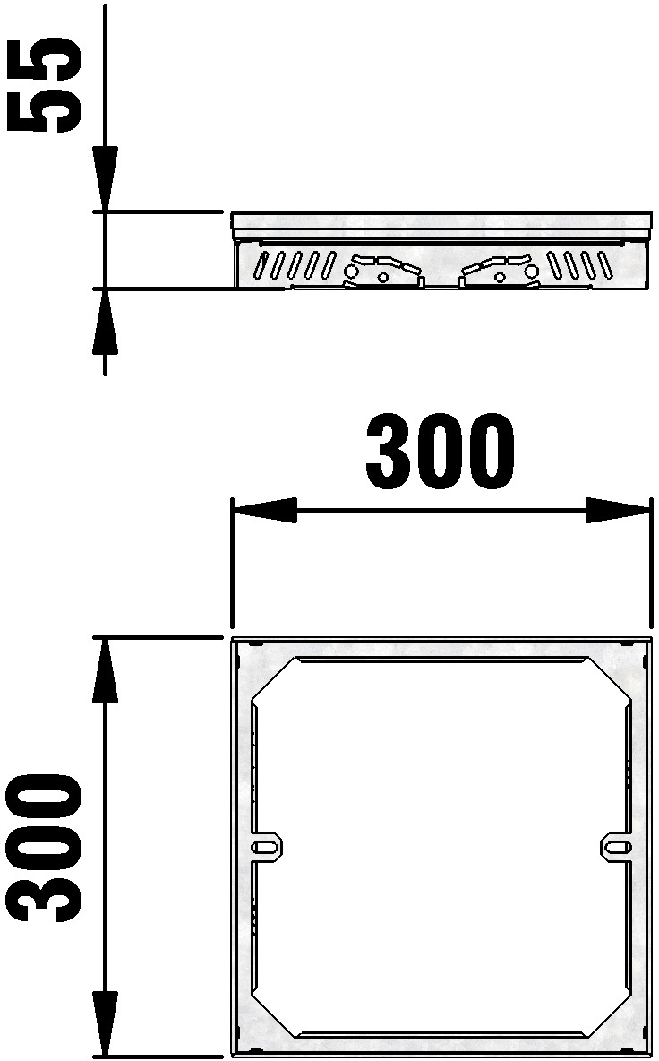 Réhausse pour TERRAFIX POINT 30x30 Type 55, galva, hauteur fixe, L/l/H 300x300x55 mm, avec possibilité de raccordement d'un canal de liaison, réf. 65321