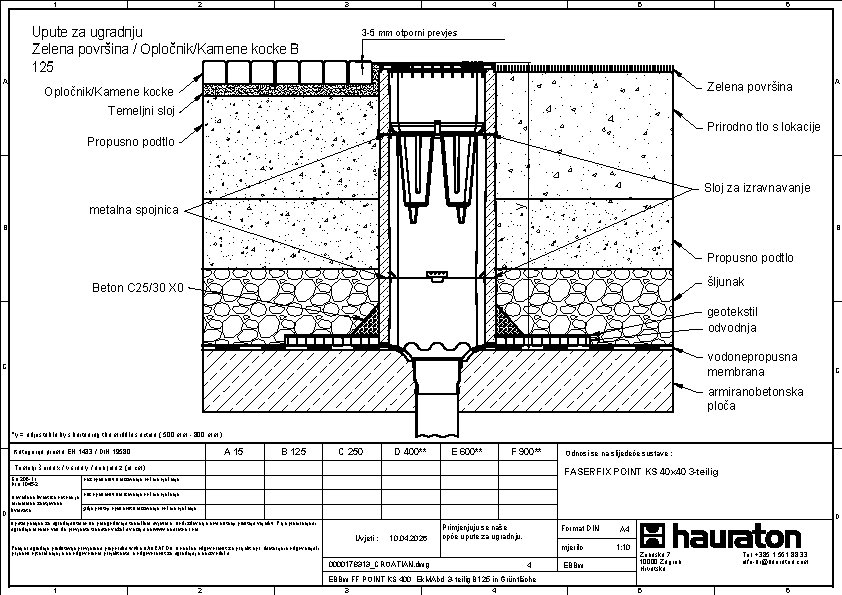 FASERFIX POINT KS 40/40, Točkasta odvodnja, klasa opterećenja E 600, s UPVC otvorom i brtvom DN 100, sifonom i aluminijskom kantom za nečistoće