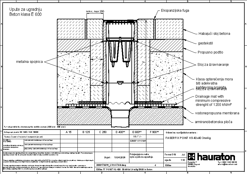 FASERFIX beton ojačan PE vlaknima, Lijevano željezo GJS 500-7, modificirani Polipropilen, traka od pocinčanog čelika