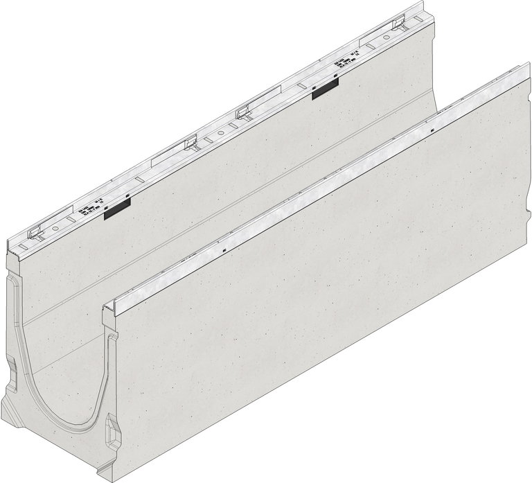 Servisni kanal FASERFIX KS 200 tip 020 - kanal izrađen od betona ojačanog vlaknima, kl. opt. A15 - F900 sukladno DIN19580/EN1433. CE oznaka. Okvir za prihvat rešetke je izrađen od pocinčanog čelika s bezvijčanim SIDE LOCK sustavom zaključavanja rešetki. D/Š/V 1000x260x370 mm, br. artikla 32067