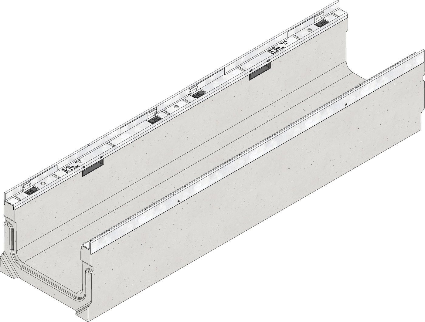 FASERFIX SUPER KS 200 alacsony, típus: 200 - Szálerősítéses betonból készült folyóka, terhelési osztály: A 15 - F 900, DIN V 19580/ EN 1433 szerint, CE-konf., horganyzott acélperemmel és SIDE-LOCK csavarmentes gyors-rögzítő rendszerrel, biztonsági fugával, H/SZ/M 1000x260x200 mm, cikkszám: 3123