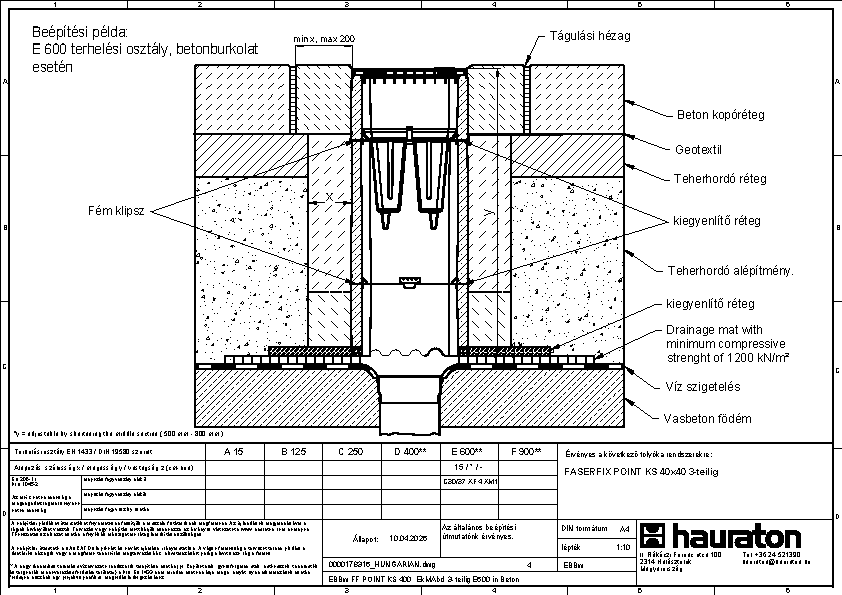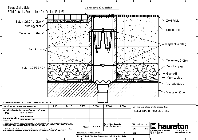 FASERFIX szálerősített beton, horganyzott acél, Öntöttvas GJS 500-7, újrahasznosított, módosított polypropilén