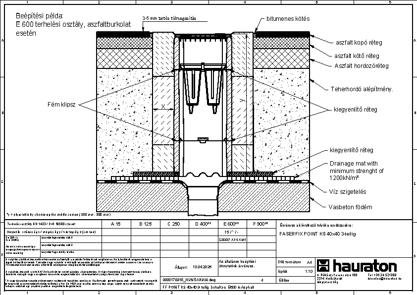 FASERFIX POINT KS 40/40, Udvari összefolyó, terhelési osztály: E 600, kompletten DN 150-es KG-tokozattal és tömítéssel, bűzzárral és alumínium szennyfogó kosárral