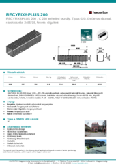 RECYFIX PLUS 200 típus: 020 – PE-PP visszaforgatható műanyagból készült folyóka, integrált fém profil rácstartóval, DIN V 19580/EN 1433 szerint, öntöttvas ráccsal, résszélesség: 2-szer 85/18 mm, rögzítő szerkezettel, fekete, terhelési osztály: A 15 – C 250, H/SZ/ M 1000x260x236 mm, cikkszám: 40761