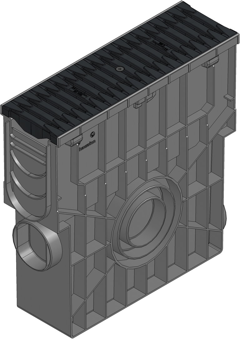 Összefolyóelem műanyag kosárral FIBRETEC bordásráccsal, rácskiosztás 9 mm, terhelési osztály C 250, fekete