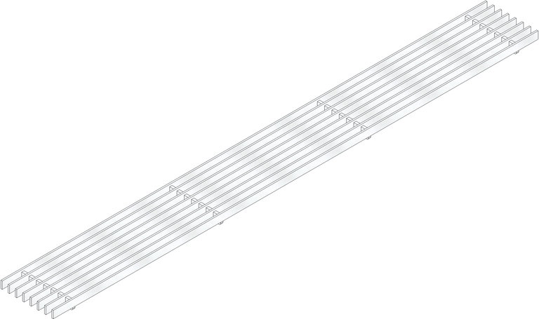 Griglia a barre longitudinali, distanza tra le barre 12 mm, in acciaio inox CNS 1.4301 (AISI 304), pedonale, cl. A15, DACHFIX RESIST /DACHFIX STEEL/STEELFIX REGULAR 115, 1 m