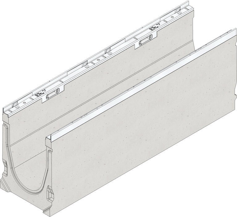 FASERFIX KS 200 Tipo 020 - Canaletta prefabbricata in calcestruzzo fibrorinforzato, classe di resistenza minima C35/45 XF4,marcata W ,+R e CE secondo la normativa Europea Armonizzata EN 1433, provvista di telaio inox con spessore di 4x2mm, capacità di carico da A15 a F900 secondo la normativa DIN19580/EN1433,senza pendenza interna, con sistema di chiusura rapida SIDELOCK, con la possibilità aggiuntiva di fermi con viti di fissaggio (2 al metro), con giunti di sicurezza e conforme a tutti i requisiti del CPR 305/2011/EU,L /L/H 1000x260x370 mm