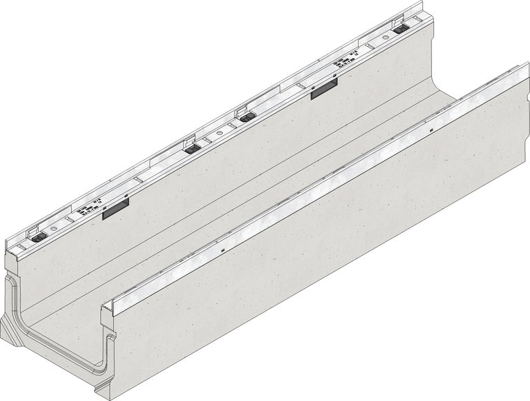 FASERFIX KS 200 Tipo 200F - Canaletta prefabbricata in calcestruzzo fibrorinforzato, classe di resistenza minima C35/45 XF4,marcata W, +R e CE secondo la normativa Europea Armonizzata EN 1433, provvista di telaio zincato con spessore di 4x2mm, capacità di carico da A15 a F900 secondo la normativa DIN19580/EN1433,senza pendenza interna, con sistema di chiusura rapida SIDELOCK,con la possibilità aggiuntiva di fermi con viti di fissaggio (2 al metro), con giunti di sicurezza e conforme a tutti i requisiti del CPR 305/2011/EU,L/L/H 1000x260x200 mm