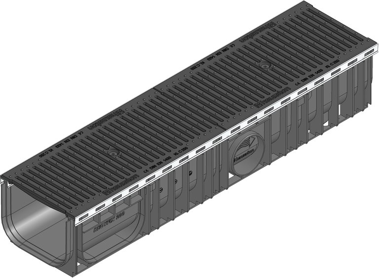 RECYFIX PLUS 200 Canaletta Tipo 010 con telaio in acciaio inox e griglia a fessure 6mm in ghisa, cl. C 250, nero, montato e fissato