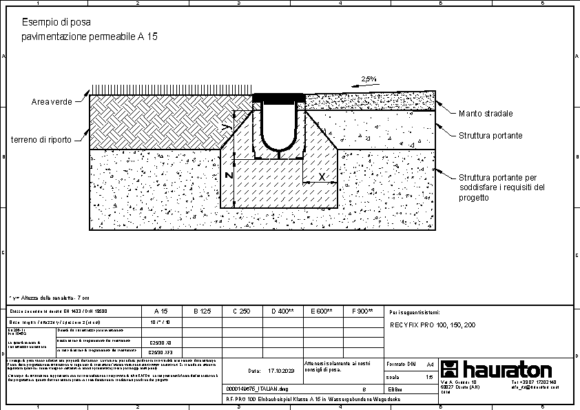 RECYFIX PRO 100 tipo 020 con griglia a maglia 30x10 mm, inox, cl. B 125, fissata, 0,5 m
