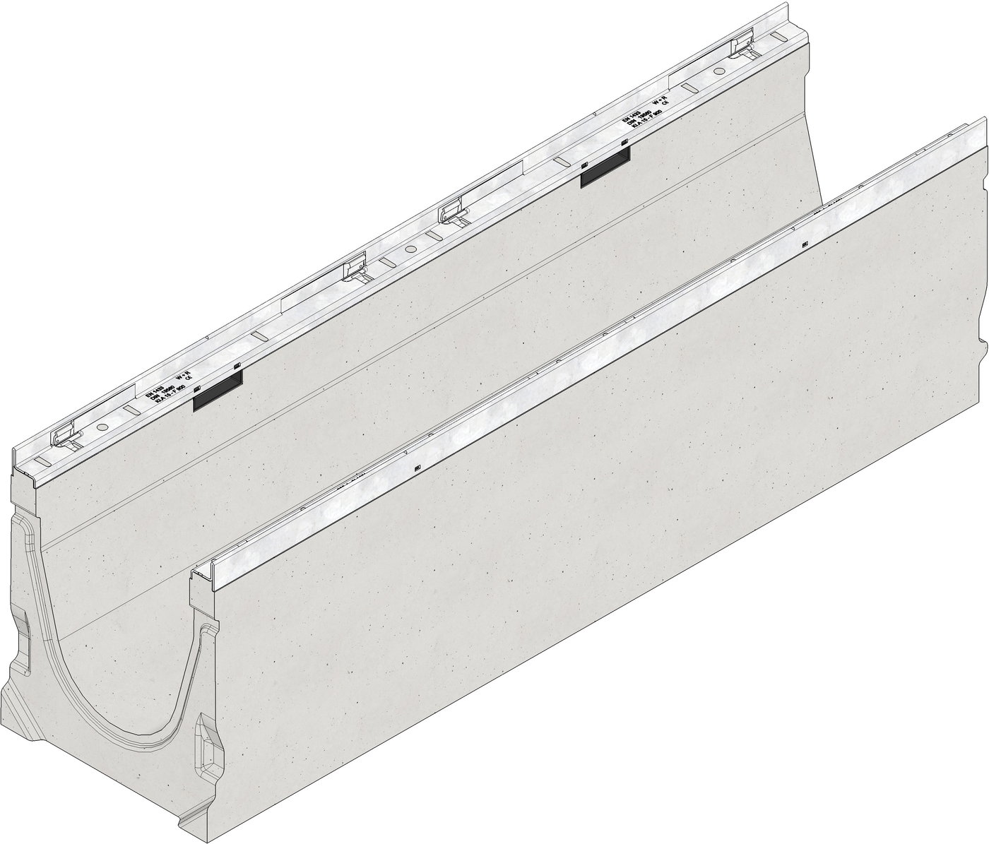 FASERFIX KS 200 - Lijngootelement van vezelversterkt beton, belastingsklasse A 15 - F 900, volgens EN 1433, conform CE, met inwendig verval type 1-9, met verzinkt stalen randbescherming en schroefloze snelvergrendeling SIDE-LOCK, 8-voudige bevestiging