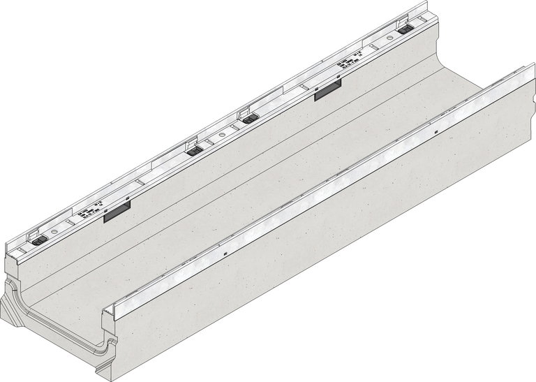 FASERFIX KS 200 vlak, type 150 - Lijngootelement van vezelversterkt beton, geschikt voor gebruik bij parkeerplaatsen, volgens EN 1433, conform CE, met verzinkt stalen randbescherming en schroefloze snelvergrendeling SIDE-LOCK, 8-voudige bevestiging, met kitvoeg, LxBxH 1000x260x150 mm, art.nr. 3122