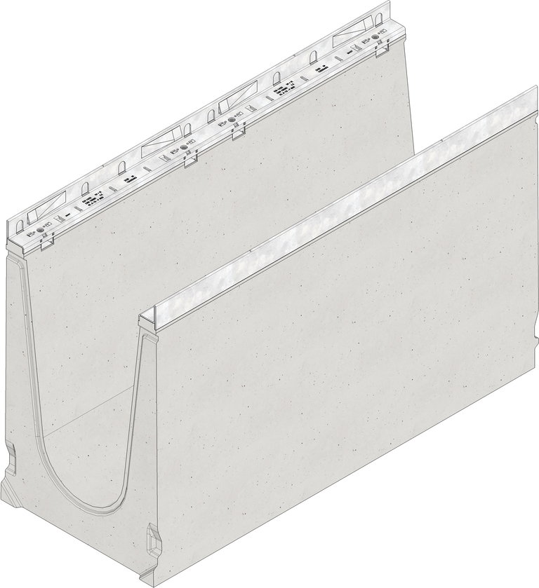 FASERFIX SUPER 300, type 01H - Lijngootelement van vezelversterkt beton, belastingsklasse A 15 - F 900, volgens EN 1433, conform CE , met verzi nkt stalen randbescherming en schroefloze snelvergrendeling SIDE-LOCK, 8 -voudige bevestiging, zonder dwarsstaven in de gootleiding, met veiligheidsvoeg, 40 mm hoge roosteroplegging, LxBxH 1000x390x630 mm, art.nr. 240 44