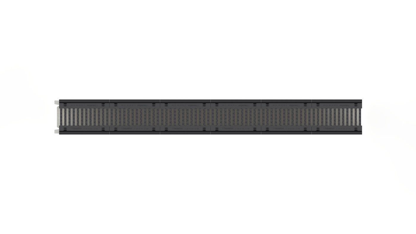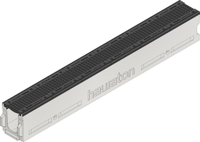 XTREMFIX I-TRAX 200, type 300 - Lijngootelement van hoogwaardig beton C60/75 type I met gietijzeren sleuvenrooster, 170x20, zwart, 8-voudige bevestiging per strekkende meter, KTL-gecoat. Belastingsklasse A 15 - F 900 volgens EN 1433, LxBxH 3000x347x420 mm