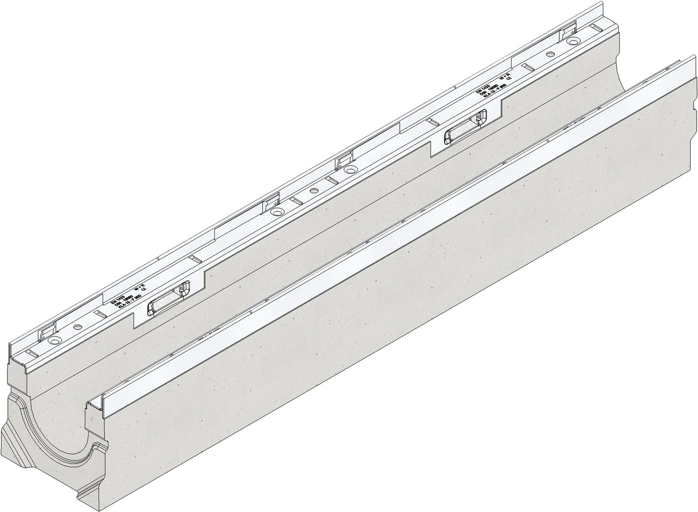 FASERFIX KS 100 typ 01 - Korpus koryta wykonany z betonu kl. C35/45 ze zbrojeniem rozproszonym (mieszanka cementu, kwarcu i włókna). Krawędzie koryt wykonane ze stali nierdzewnej o wysokości 20 mm i szerokości 25 mm w najszerszym miejscu, zakotwione w bocznych ścianach za pomocą poziomych kotew zaciskowych. Krawędzie koryt wyposażone w 8 specjalnych poziomych zamków pod ruszt (system zatrzaskowy SIDE-LOCK), w owalne otwory pod trzpienie z rusztów w ilości 8 szt., a także w 4 poziome gniazda pod blokady ANTY WANDAL . Boczne ścianki koryta gładkie, bez wcięć i wyżłobień, dno koryta chropowate zapewniające dobrą przyczepność z podbudową betonową. Klasa wytrzymałości korpusu koryta bez rusztów = F 900. Ognioodporność: klasa A1 (koryto niepalne). Znakowanie na ramie zgodnie z PN -EN 1433 posiadające dopuszczenia DWU.