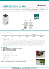 FASERFIX POINT KS 40/40 - Korpus studzienki wykonany z betonu kl. C35/45 ze zbrojeniem rozproszonym (mieszanka cementu, kwarcu i włókna). Krawędzie studzienki wykonane ze stali ocynkowanej o wysokości 20 mm i szerokości 25 mm w najszerszym miejscu, zakotwione w bocznych ścianach za pomocą poziomych kotew zaciskowych. Boczne ścianki koryta gładkie, bez wcięć i wyżłobień, dno koryta chropowate zapewniające dobrą przyczepność z podbudową betonową. Klasa wytrzymałości korpusu bez rusztów = od A 15 do E 600 Ognioodporność: klasa A1 (koryto niepalne). Znakowanie na ramie zgodnie z PN-EN 1433 posiadające dopuszczenia DWU.