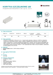 FASERFIX STANDARD E 100 typ 01, 0,5 m - Korpus koryta wykonany z betonu kl. C35/45 ze zbrojeniem rozproszonym (mieszanka cementu, kwarcu i włókna). Krawędzie koryt szerokości 30 mm w najszerszym miejscu, wyposażone w 4 poziome gniazda pod blokady ANTY WANDAL. Boczne ścianki koryta gładkie, bez wcięć i wyżłobień, dno koryta chropowate zapewniające dobrą przyczepność z podbudową betonową. Klasa wytrzymałości korpusu koryta bez rusztów = C 250. Ognioodporność: klasa A1 (koryto niepalne). Znakowanie na ramie zgodnie z PN -EN 1433.