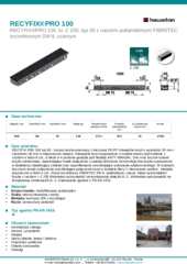 RECYFIX PRO 100 typ 95 - Korpus koryta wykonany z tworzywa PE-PP. Krawędzie koryt o wysokości 20 mm i szerokości 30 mm w najszerszym miejscu. Krawędzie koryt wyposażone w owalne otwory pod trzpienie z rusztów w ilości 8 szt., a także w 4 poziome gniazda pod blokady ANTY WANDAL. Dno oraz boczne ścianki koryta użebrowane, zapewniające trwałe połączenie z opaską betonową. Konstrukcja dna koryta wyposażona w dodatkowy stabilizujący szkielet oraz wyprofilowanie umożliwiające wykonanie odpływu dolnego. W ścianach bocznych koryta wytłoczenia umożliwiające połączenie koryt w kształcie litery T. Mocowanie rusztów - blokada poprzeczna w ilości 2 szt.. Ruszt szczelinowy FIBRETEC SW 9, poliamidowy, czarny. Klasa wytrzymałości koryta z rusztem = C 250 Minimalna wytrzymałość na temperaturę stałą 80 st. C. Minimalna wytrzymałość na temperaturę chwilową 95 st. C. Znakowanie zgodnie z PN-EN 1433.