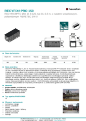 RECYFIX PRO 150 typ 01, 0,5 m - Korpus koryta wykonany z tworzywa PE-PP. Krawędzie koryt o wysokości 20 mm i szerokości 30 mm w najszerszym miejscu. Krawędzie koryt wyposażone w owalne otwory pod trzpienie z rusztów w ilości 8 szt., a także w 4 poziome gniazda pod blokady ANTY WANDAL. Dno oraz boczne ścianki koryta użebrowane, zapewniające trwałe połączenie z opaską betonową. Konstrukcja dna koryta wyposażona w dodatkowy stabilizujący szkielet oraz wyprofilowanie umożliwiające wykonanie odpływu dolnego. W ścianach bocznych koryta wytłoczenia umożliwiające połączenie koryt w kształcie litery T. Mocowanie rusztów - blokada poprzeczna w ilości 2 szt.. Ruszt szczelinowy FIBRETEC SW 9, poliamidowy, czarny. Klasa wytrzymałości koryta z rusztem = B 125 Minimalna wytrzymałość na temperaturę stałą 80 st. C. Minimalna wytrzymałość na temperaturę chwilową 95 st. C. Znakowanie zgodnie z PN-EN 1433.