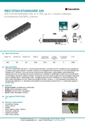 RECYFIX STANDARD 100 typ 01 - Korpus koryta wykonany z tworzywa PE-PP. Krawędzie koryt wyposażone w owalne otwory pod trzpienie z rusztów w ilości 8 szt. Krawędzie koryt wyposażone w 4 poziome gniazda pod blokady ANTY WANDAL. Dno oraz boczne ścianki koryta użebrowane, zapewniające trwałe połączenie z opaską betonową. Konstrukcja dna koryta wyposażona w dodatkowy stabilizujący szkielet oraz wyprofilowanie umożliwiające wykonanie odpływu dolnego. W ścianach bocznych koryta wytłoczenia umożliwiające połączenie koryt w kształcie litery T. Mocowanie rusztu - blokada poprzeczna ANTY WANDAL x2. Ruszt szczelinow SW 80/6, żeliwo sferoidalne EN-GJS. Klasa wytrzymałości koryta z rusztem = C 250 Minimalna wytrzymałość na temperaturę stałą 80 st. C. Minimalna wytrzymałość na temperaturę chwilową 95 st. C. Znakowanie zgodnie z PN-EN 1433.