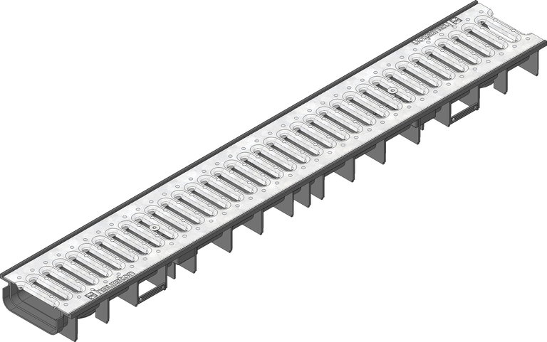 RECYFIX STANDARD 100, korytko typ 60 z rusztem szczelinowym SW 75/9, zacisk., przej. dla sam. os., ocynk.