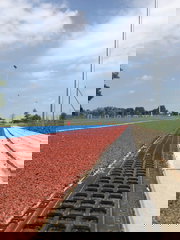 SPORTFIX pokrywa prosta do kanałów szczelinowych z otworami po obu stronach, wykonanan z tworzywa odpornego na promieniowanie UV, biała, z pinami pozycjonującymi, jako wewnętrzna krawędź bieżni, z mozliwością zdejmowana i ponownego montażu, do mocowania na prostych kanałach szczelinowych SPORTFIX, zgodna z wymogami World Athletics