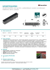 SPORTFIX PRO 100, korytko typ 010 - Korpus koryta wykonany z tworzywa PE-PP wraz z rusztem FIBRETEC poliamidowym, szczelinowym SW 9, czarnym, o parametrach minimalnych ujętych w poniższej w tabeli. Krawędzie koryt o wysokości 20 mm i szerokości 30 mm w najszerszym miejscu. Krawędzie koryt wyposażone w owalne otwory pod trzpienie z rusztów w ilości 8 szt., a także w 4 poziome gniazda pod blokady ANTY WANDAL. Dno oraz boczne ścianki koryta użebrowane, zapewniające trwałe połączenie z opaską betonową. Konstrukcja dna koryta wyposażona w dodatkowy stabilizujący szkielet oraz wyprofilowanie umożliwiające wykonanie odpływu dolnego. Mocowanie rusztów - blokada poprzeczna w ilości 2 szt.. Minimalna wytrzymałość na temperaturę stałą 80 st. C. Minimalna wytrzymałość na temperaturę chwilową 95 st. C. Znakowanie zgodnie z EN 1433.