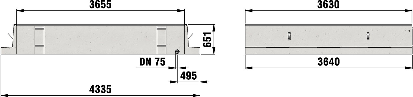 zestaw do zabudowy rowu z wodą, z odpływem DN75 mm, betonowy