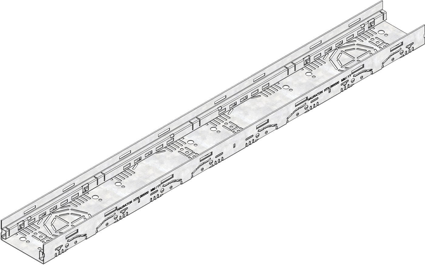 DACHFIX STEEL 115 tip 45 - Telo kanala, napravljena od pocinkovanog čelika zaštićenog od korozije, pristupačno za pešake i invalidska kolica, nosač rešetke nagnut prema unutra, s perforacijom sa strane i u dnu kanala, sa mogućnošću spajanja u dnu kanala za cevni spoj DN/OD 75 kao i bočnim 8-strukim spajanjem za krstasti kanal, sa integrisanim, opcionalnim 4-strukim pričvrsnim sidrom, DxŠxV 1000x115x45 mm, artikl br. 65000