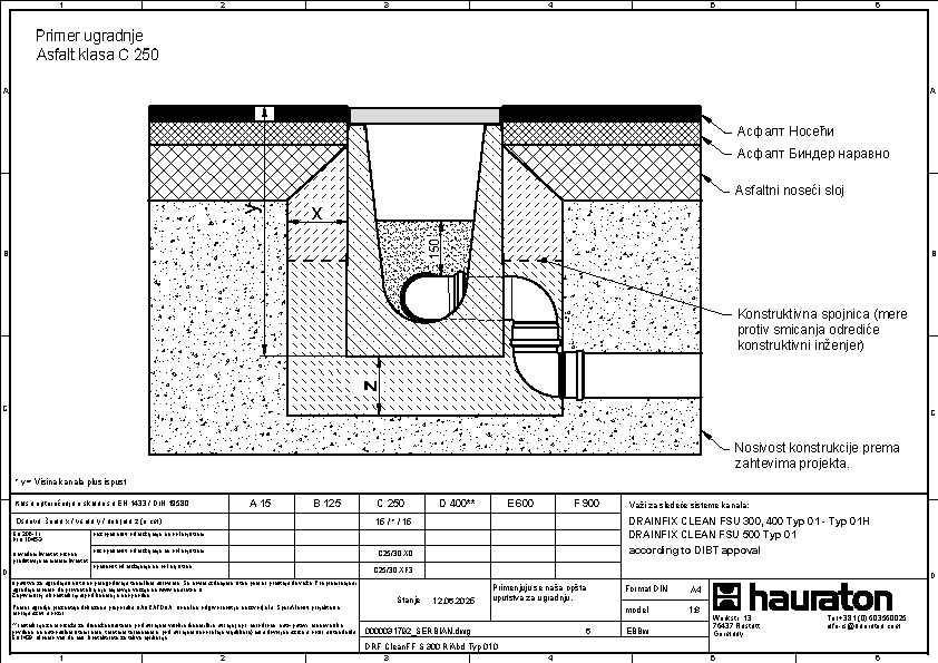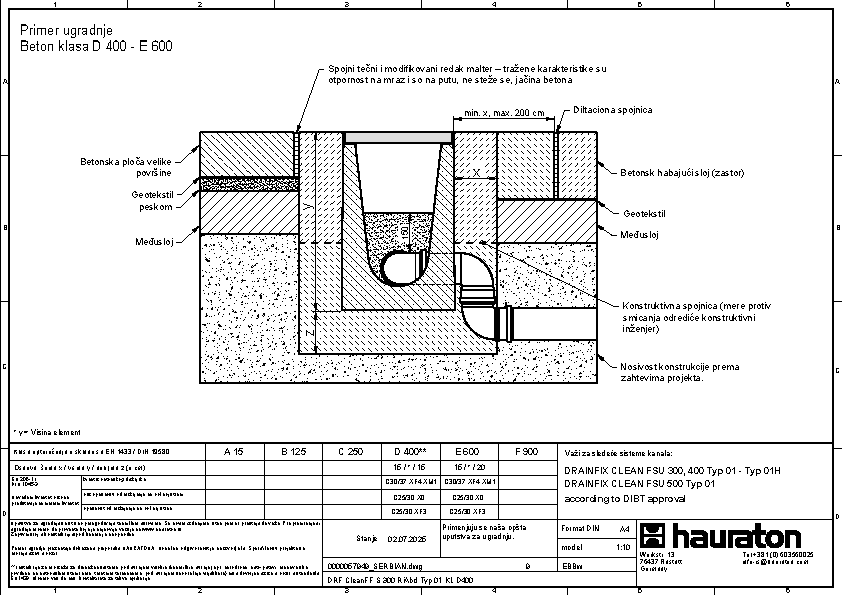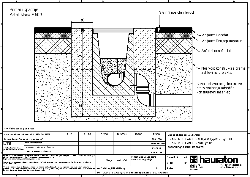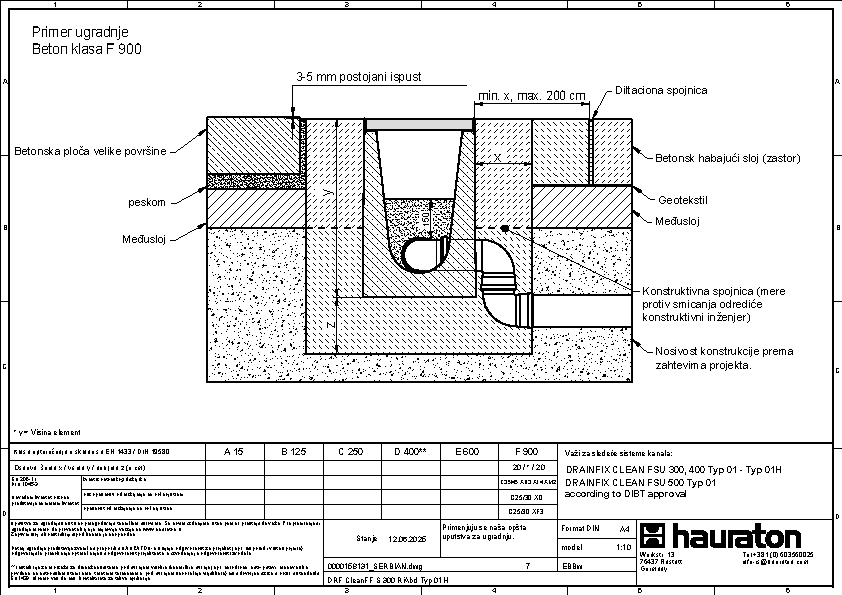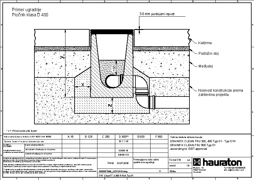 DRAINFIX CLEAN FSU 400 tip 01H - Završni element sa rubom od pocinkovanog čelika, bočno sa integrisanim PVC-U spojem DN/OD 110, s odvodnom cevi DN/OD 100, s geotekstilom i spojnicom, s nacionalnim tehničkim odobrenjem (abZ od strane DIBt) broj: Z-84.2-7,